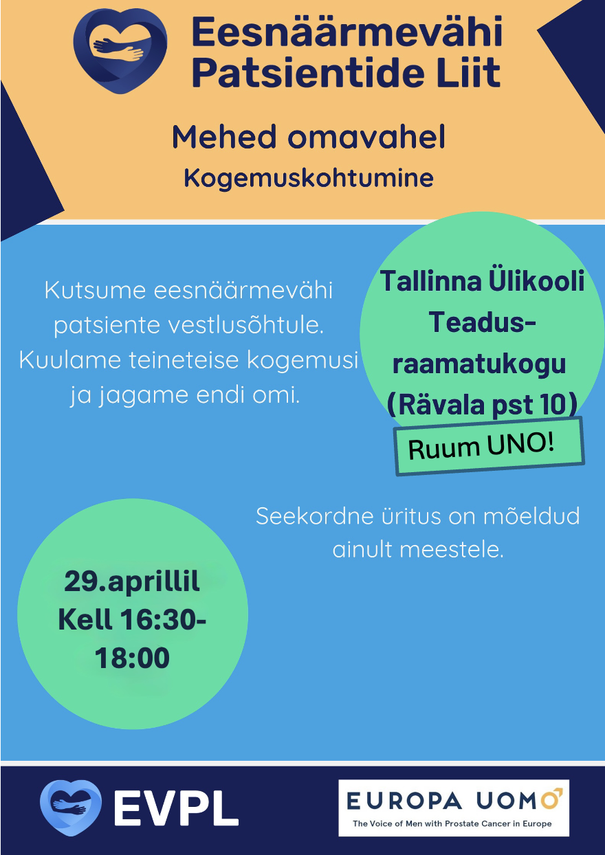 Kogemusringi/ toetusrühma järgmine kohtumine toimub 29.04.2026 (kolmapäev) kl 16:30 TLÜ Teadusraamatukogu (Rävala pst. 10) seminariruumis UNO. Kogemusringi juhivad Sven Suurraid ja Anti Valk. Osalemine on tasuta, eelnev registreerimine pole vajalik.